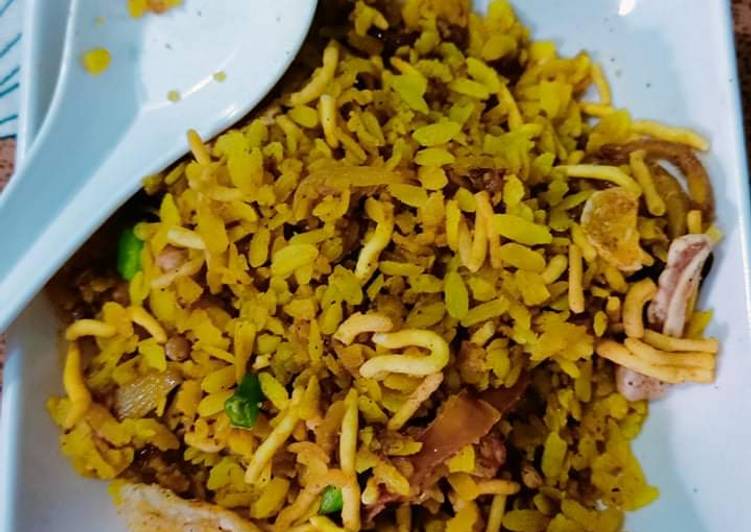 - Then poha is washed and clean the water. Then add salt, red chilli, add lemon and sugar mixture